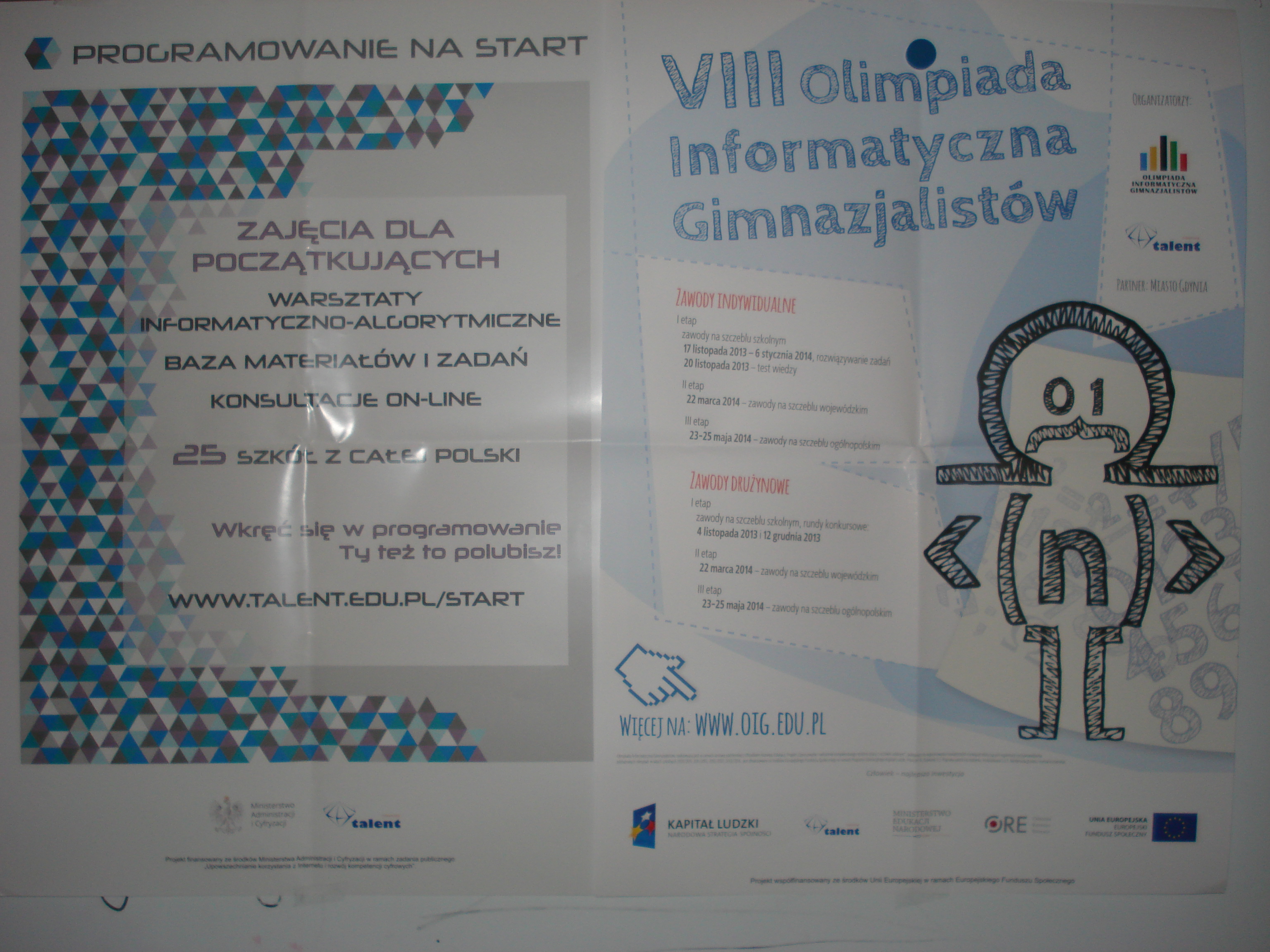 Zapraszamy wszystkich miłośników informatyki oraz uczniów przygotowujących się do Olimpiady Informatycznej i Olimpiady Informatycznej Gimnazjalistów. Zapewniamy 4 Grupy zadaniowe: I, II, III i Balti. Zajęcia prowadzą laureaci Olimpiad i wykładowcy UW i PG pod opieką Ryszarda Szubartowskiego.