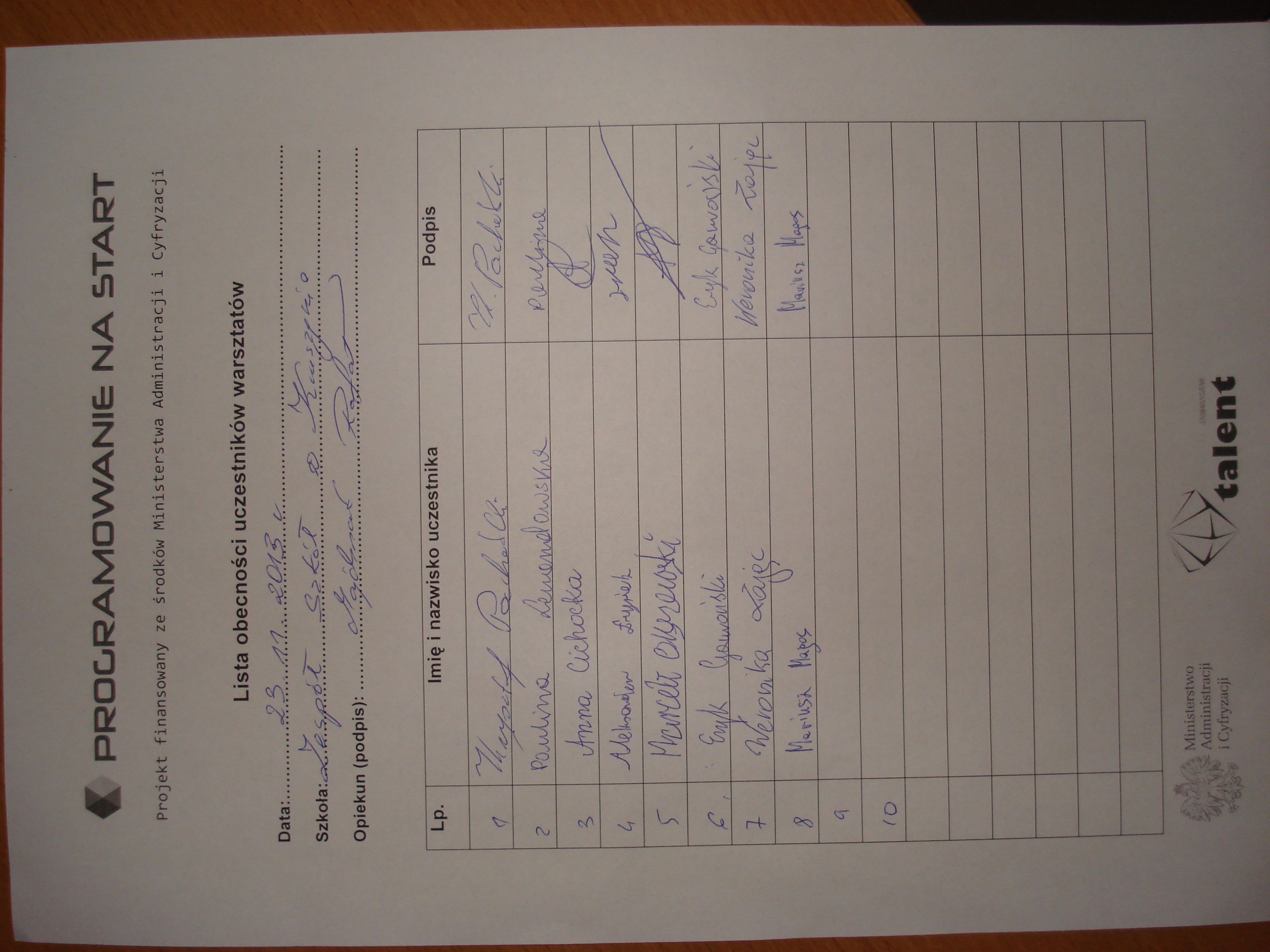 - 28.11.2013 – ukazanie się komunikatu na stronie www.talent.edu.pl